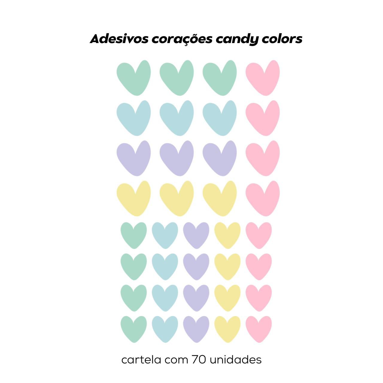 Cartela de adesivos decorativos com 70 adesivos, contendo 2 tamanhos (4cm / 3cm).
